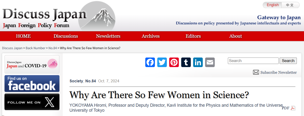 and attending committes as a member. She also served as Deputy Director of Kavli IPMU (2022–2025) and Director of the Public Relations Office at the University of Tokyo (2021–2022).