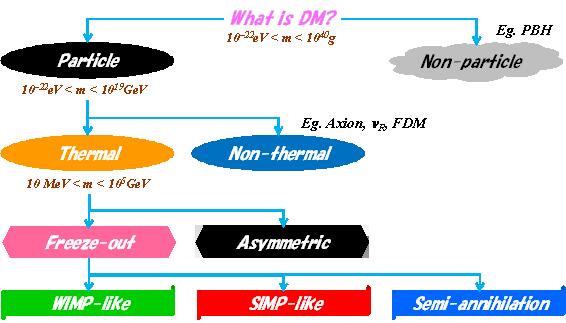 Figure 2. Classification of the WIMP-like thermal dark matter and the most efficient detection method for each case.