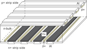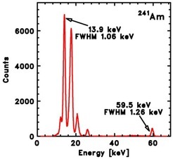 シリコン両面ストリップ検出器(DSSD)は高エネルギー加速器実験で粒子飛跡検出器として広く用いられています。われわれは、これをX線の検出器として用いるために低雑音化に取り組んできました。最近では、1-2 keV (FWHM)という高いエネルギー分解能を持ち。4cm角というような大面積のDSSDの開発に成功しています。さらに、高いエネルギーのX線に対しても十分高い検出効率を持つように、300ミクロンから500ミクロンの厚さの検出器を多層に積み重ねた検出器の開発も行っています。